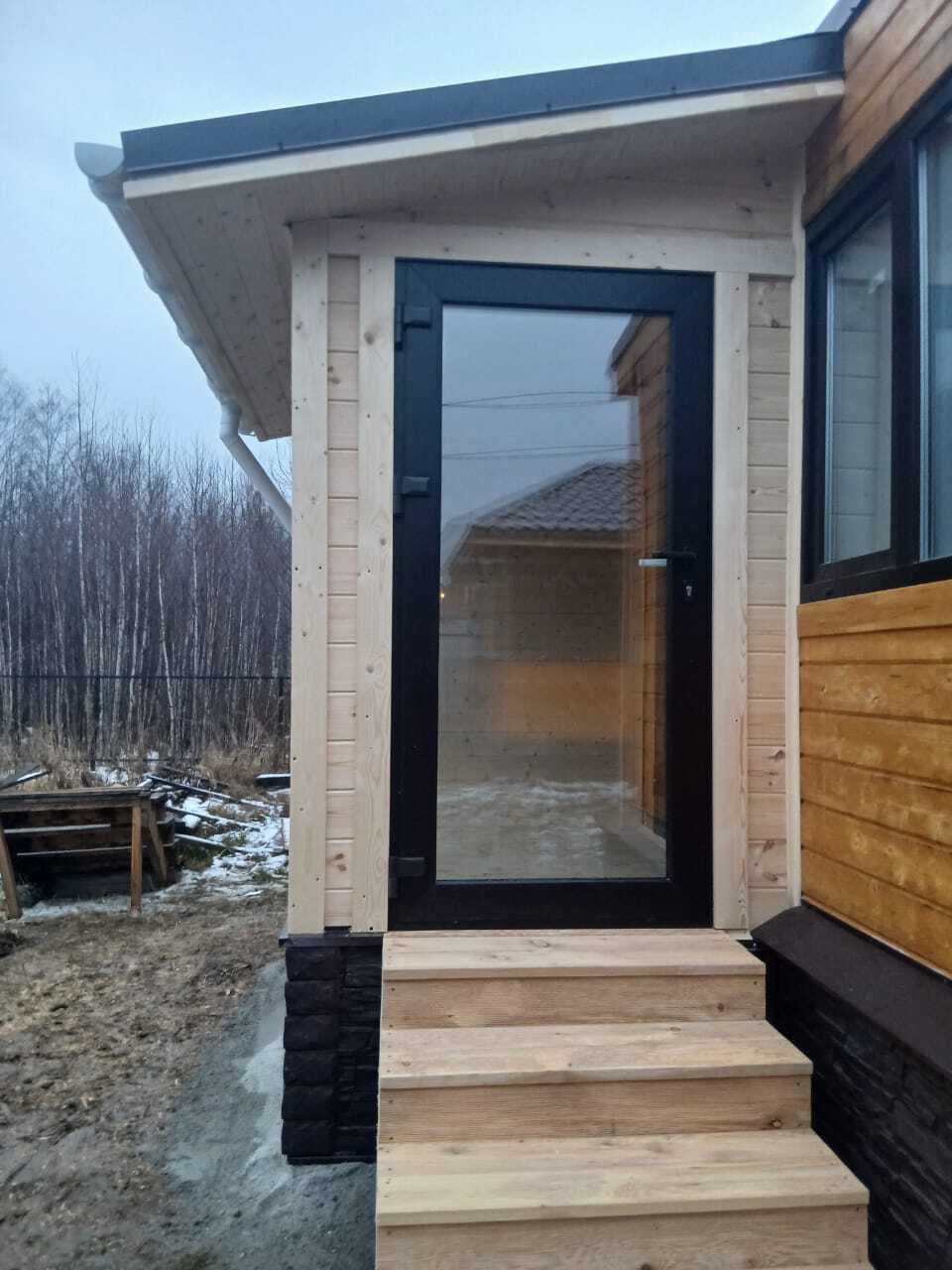 Сегодня покажу вам входную группу, которую сдали на прошлой неделе. Расскажу пару слов о заказчике. Молодой семейный мужчина, по меркам моей супруги — таким является мужчина в период с 24 до 44, далее уже зрелость наступает)))) Мы приезжаем к нему для постройки уже 3 раз, в прошлом году с командой делали беседку, в этом навес и входную группу, так же обсудили планируемые постройки на весну.