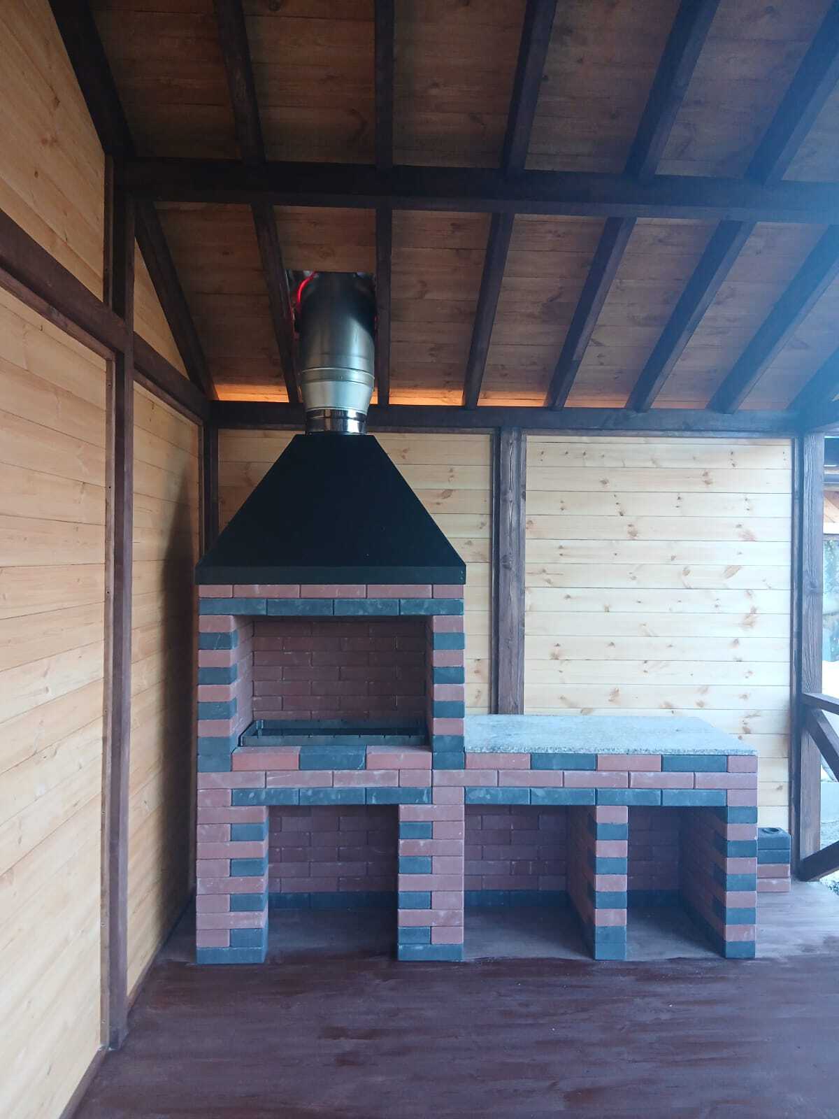 Лего-барбекю: был выбран вариант 4 со столешницей и возможностью в дальнейшем установить печь под казан, сделан потолочно-проходной узел, установлен мастер-флеш.