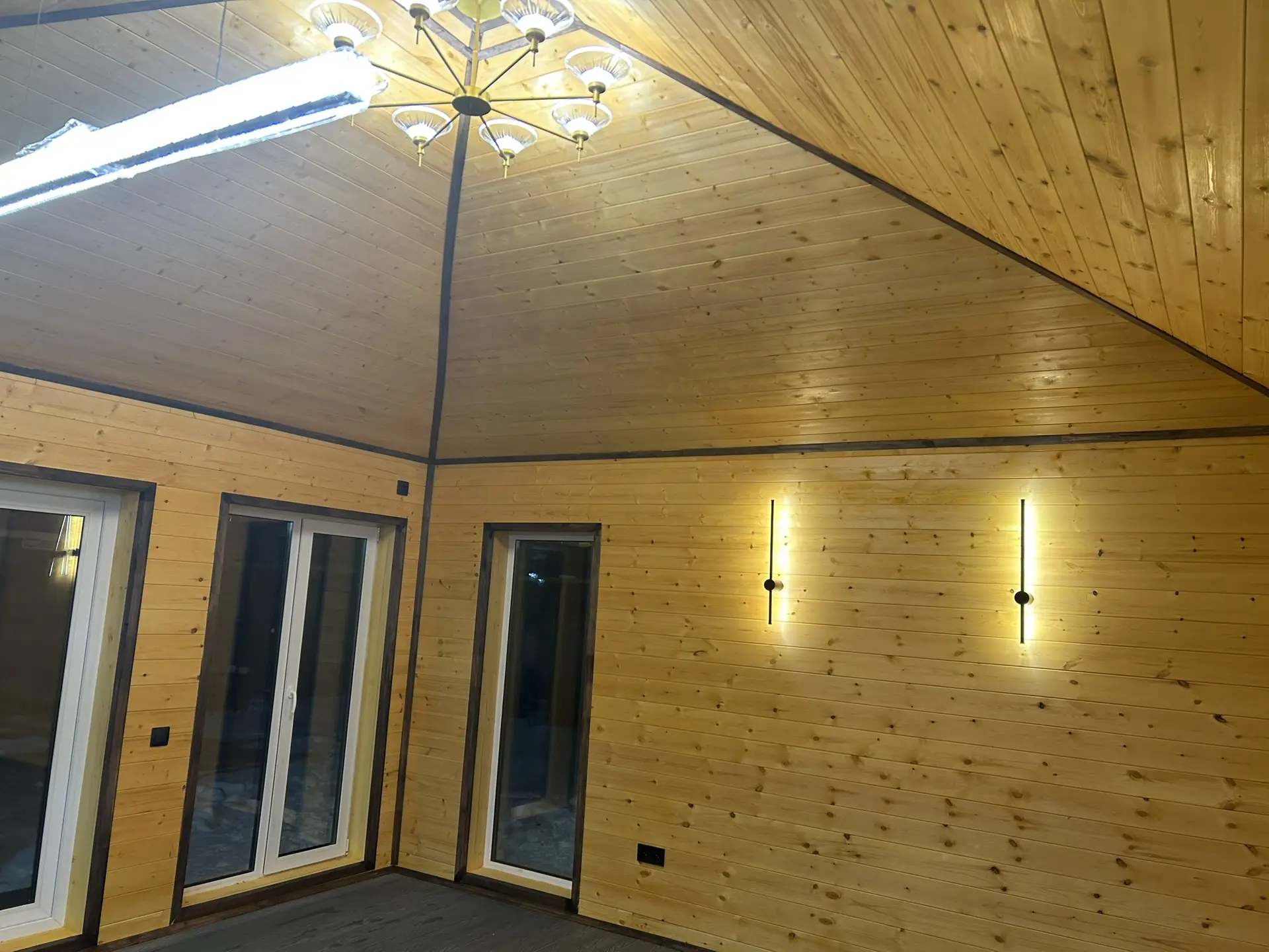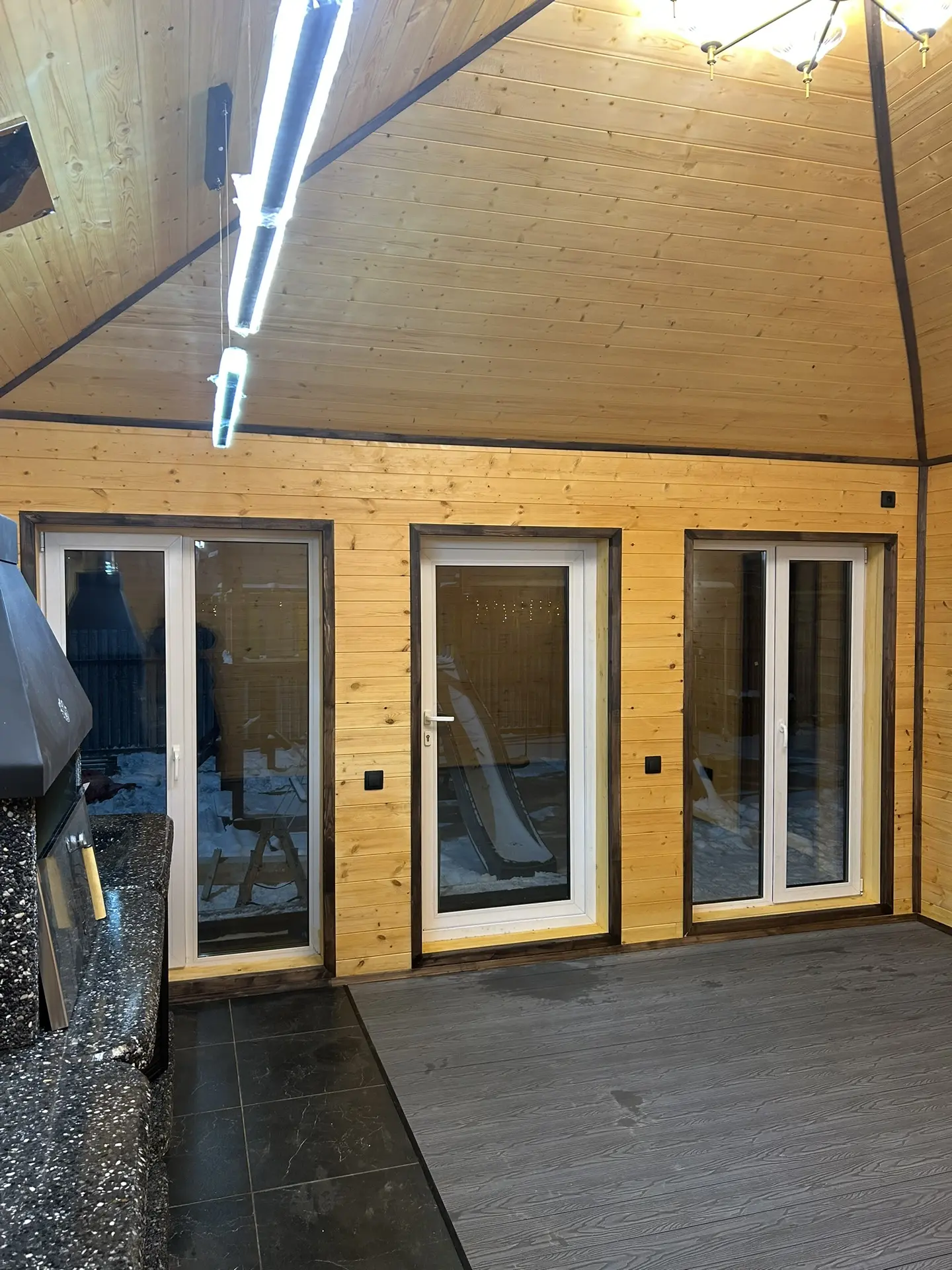 · Отделка: Обшивка: блок-хаус, вагонка; укладка: дпк, керамогранит. Плинтуса, уголки, наличники